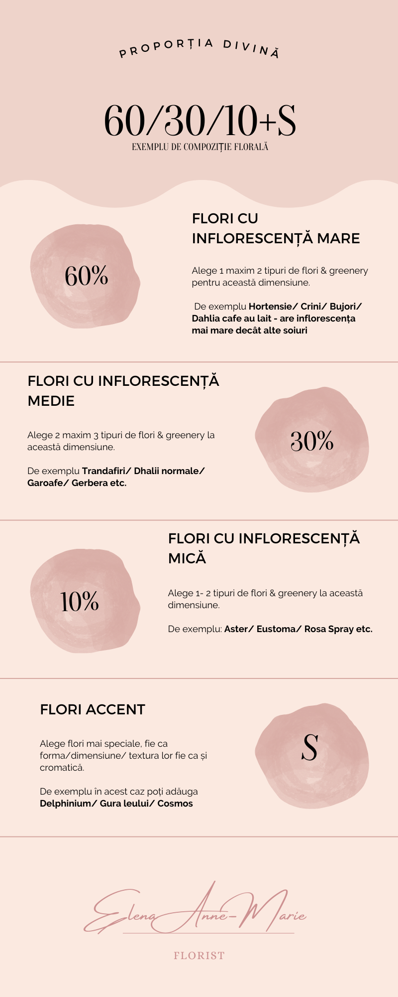 Această formulă 60/30/10 +S o poți aplica cu succes și  în cromatica aranjamentului. Îți las aici un articol care îți dă un exemplu de cum poți aplica formula.